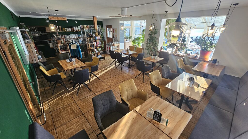 hausgemachte Waffeln sowie köstliche Kuchen und Torten. Ob Ofenkartoffel, Flammkuchen oder wechselnde vegane Tagesgerichte – Bei uns finden Sie ganztägig köstliche Leckereien!