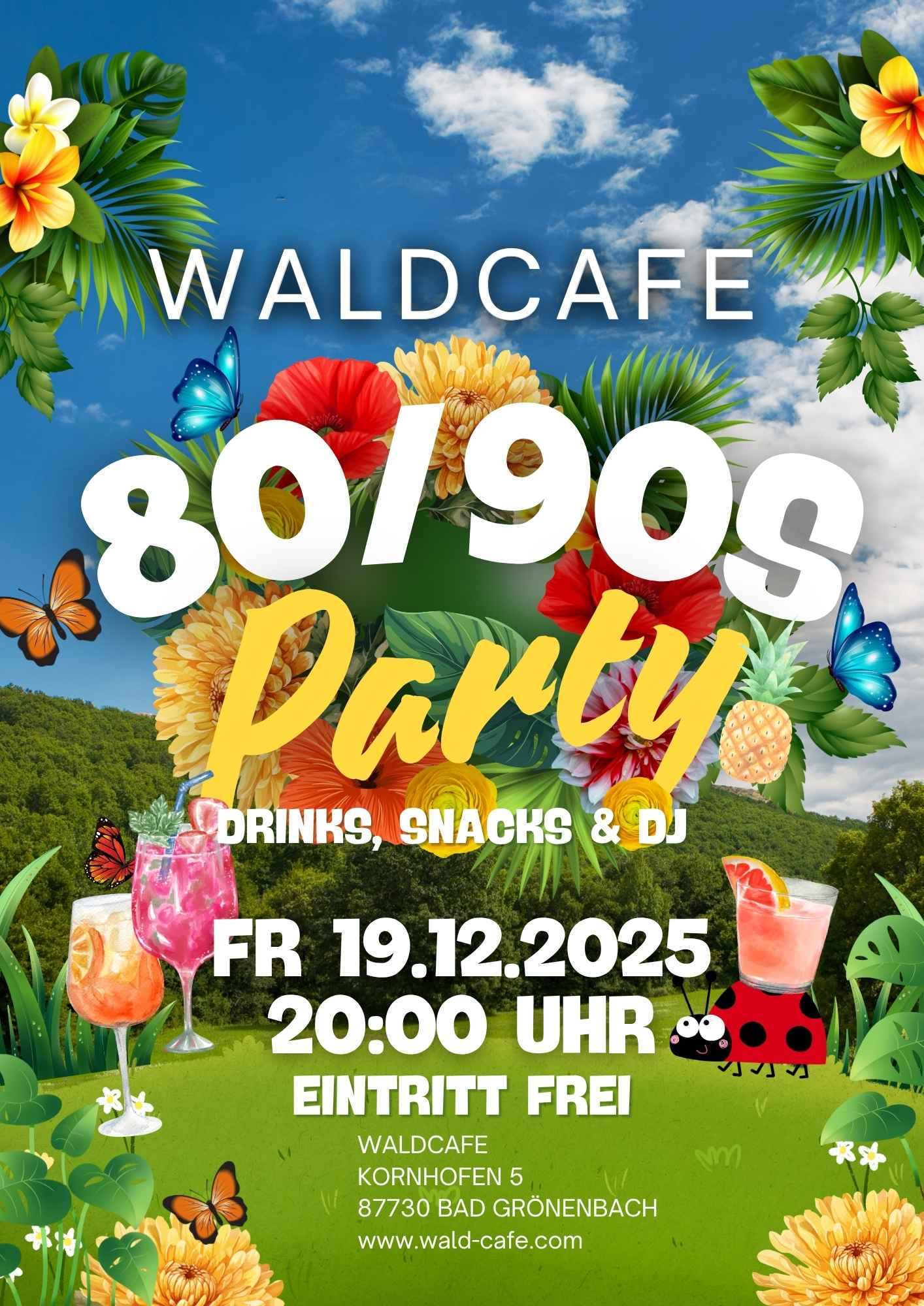 Waldcafe Kornhofen 5, Bad Grönenbach, Bayern, GermanySalsa, Bachata, Merengue, Cha-Cha-Cha … die schönste Art durchs Leben zu tanzen. Lasst uns vor einer atemberaubenden Landschaft, von der Kraft der Musik inspiriert…die Füße wund tanzen. Innen und Außen …